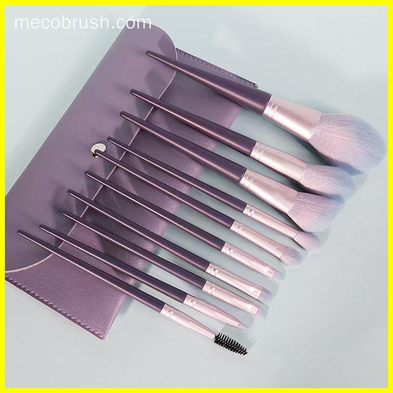 Experience professional performance and elegance with MECO Brush’s 10-Piece Purple Nano Soft Makeup Brush Set. Designed with ultra-soft nano synthetic fibers, solid wooden handles, and sleek aluminum ferrules, this collection delivers flawless application and luxurious comfort. Perfect for beauty brands seeking refined craftsmanship and full customization options — including custom antibacterial bristles for enhanced hygiene.